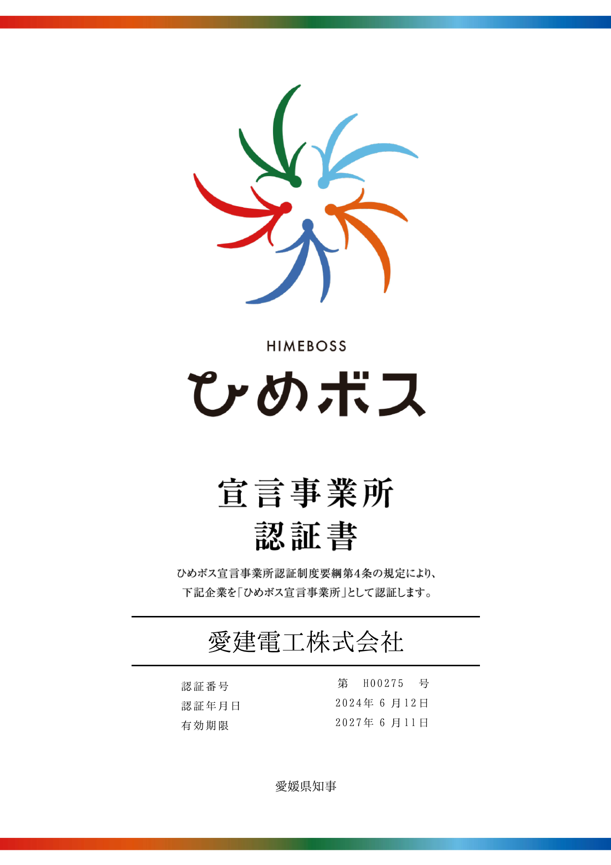 愛建電工は社員が安心して働ける会社づくりを心がけております。